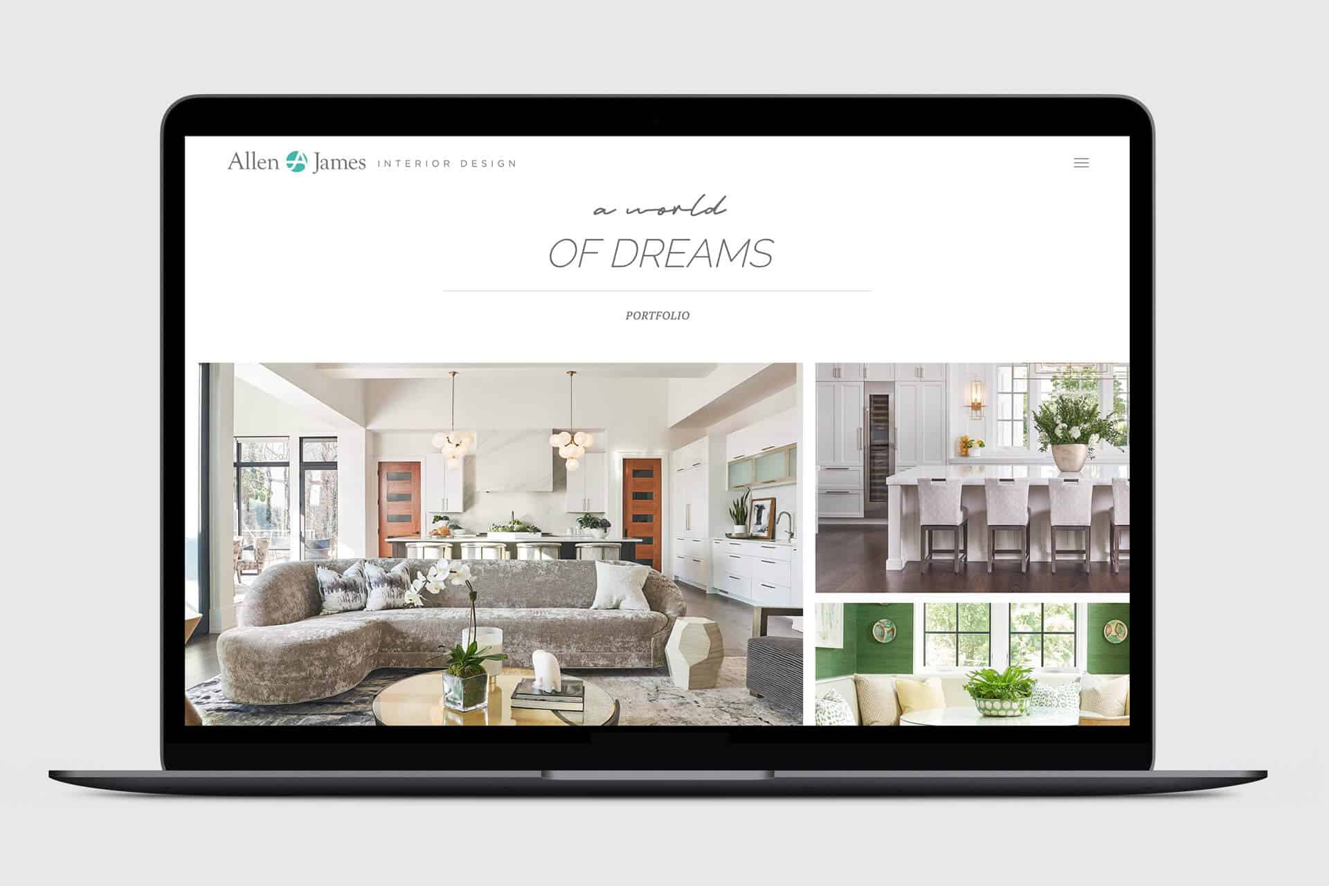 This web design for Allen & James Home presents highlights their high-end interior design expertise with a sense of luxury and fashion.