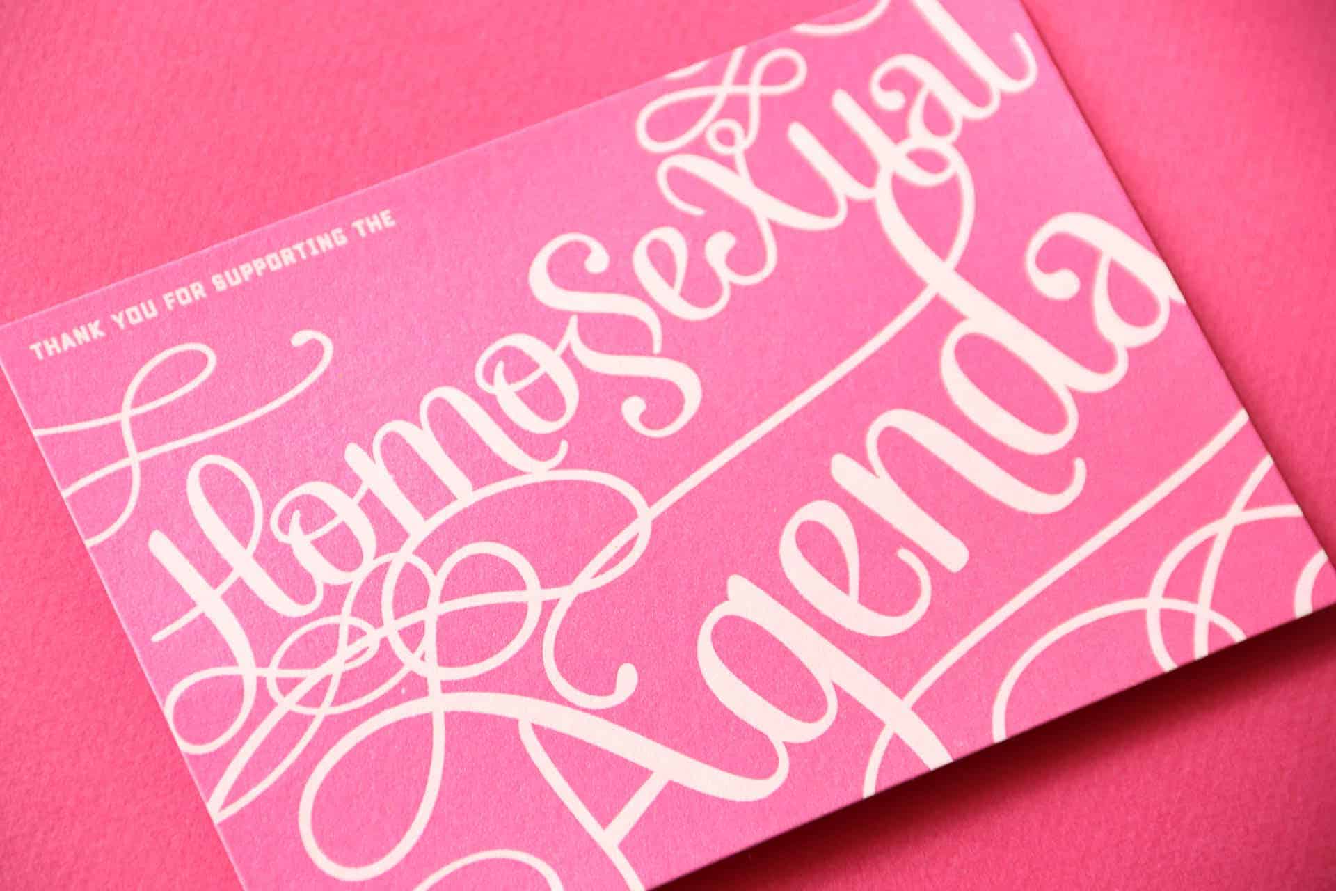 Southerners on New Ground (SONG) launched a campaign to challenge North Carolina Governor Pat McRory’s actions after he signed a regressive law that was harmful to LGBTQ+, Black, Brown, working class, poor, and immigrant people in North Carolina. SONG sent this sassy pink sparkly postcard on donors’ behalfs in exchange for small donations. As a result, SONG received additional funds for its work, and McRory’s office received over 1000 of these powerfully worded messages, sharing people’s anger and rejection of harmful legislation.